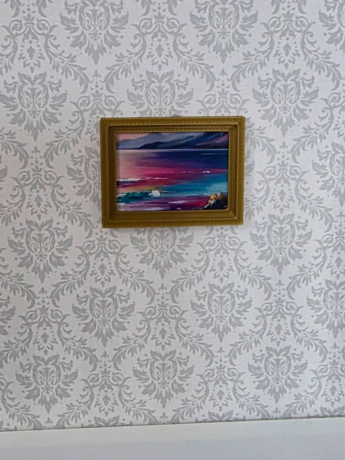 Add a realistic finishing touch to your dolls house or miniature room setting with this modern 1:12 scale miniature antique gold picture frame.