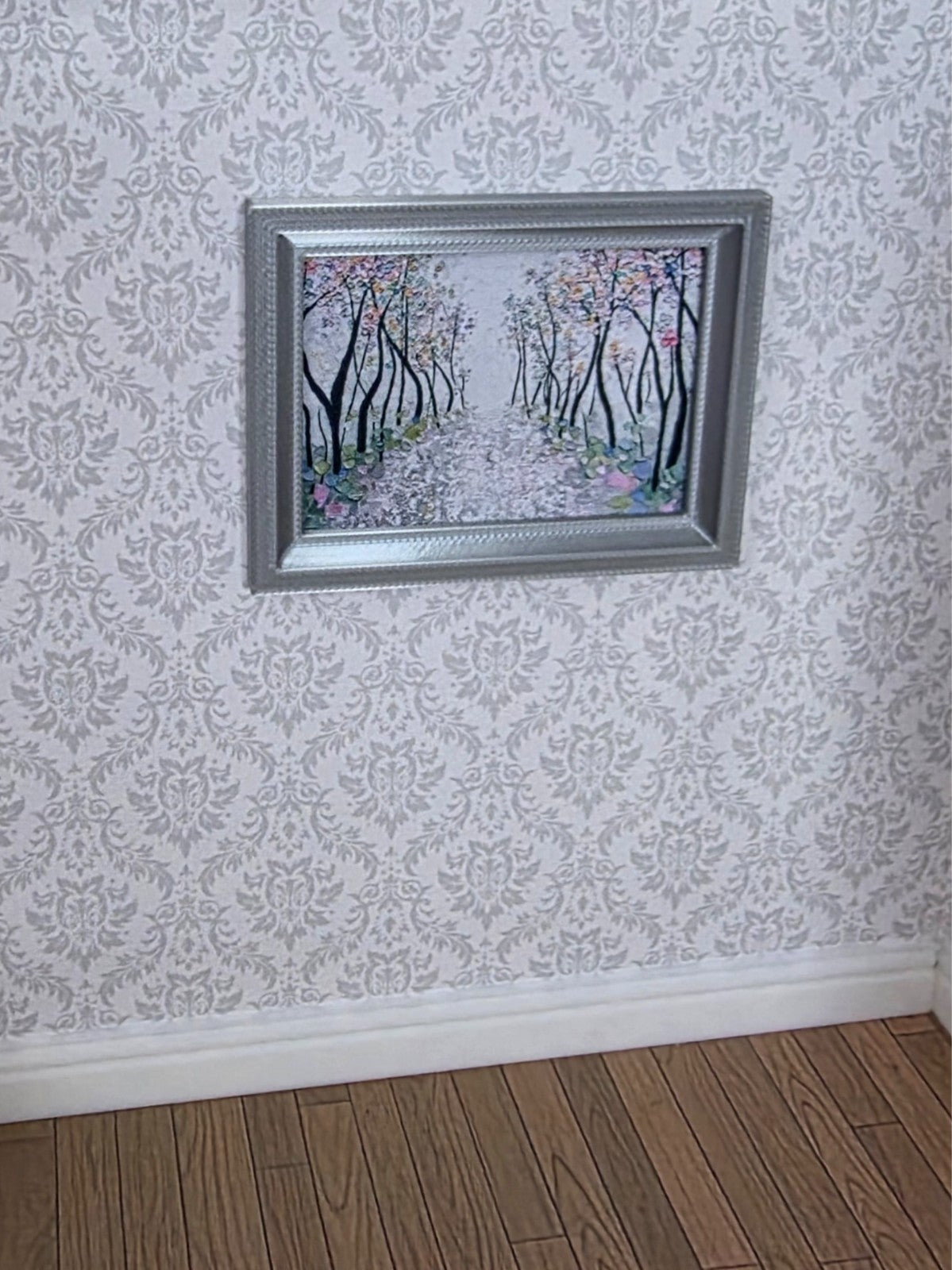 Add a realistic finishing touch to your dolls house or miniature room setting with this modern 1:12 scale miniature silver picture frame.